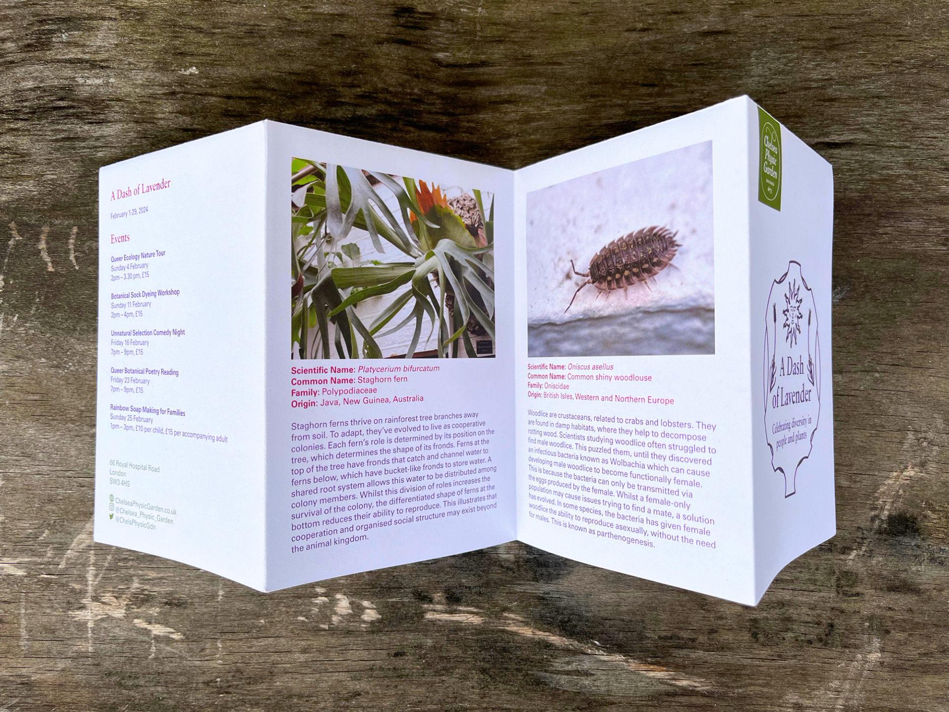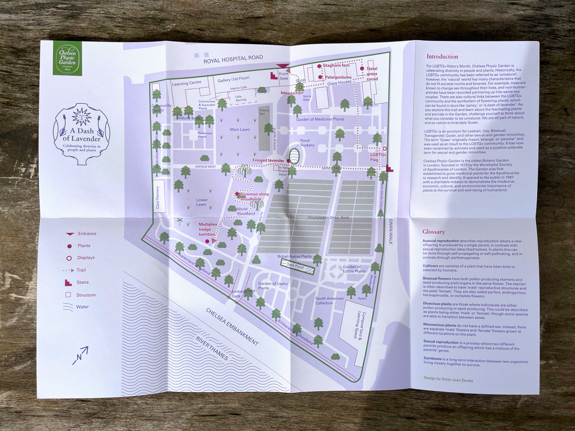 For LGBTQ+ History Month, Chelsea Physic Garden is celebrating diversity in people and plants. Historically, the LGBTQ+ community has been referred to as ‘unnatural’, however, the ‘natural’ world has many characteristics that do not fit societal norms and binaries. For example, trees are known to change sex throughout their lives, and non-human animals have been recorded partnering up into same-sex couples. There are also cultural links between the LGBTQ+ community and the symbolism of flowering plants, which can be found in slurs like ‘pansy’, or ‘a dash of lavender’. As you explore this trail and learn about the fascinating plants and animals in the Garden, challenge yourself to think about what you consider to be unnatural. We are all part of nature, and so nature is invariably Queer.