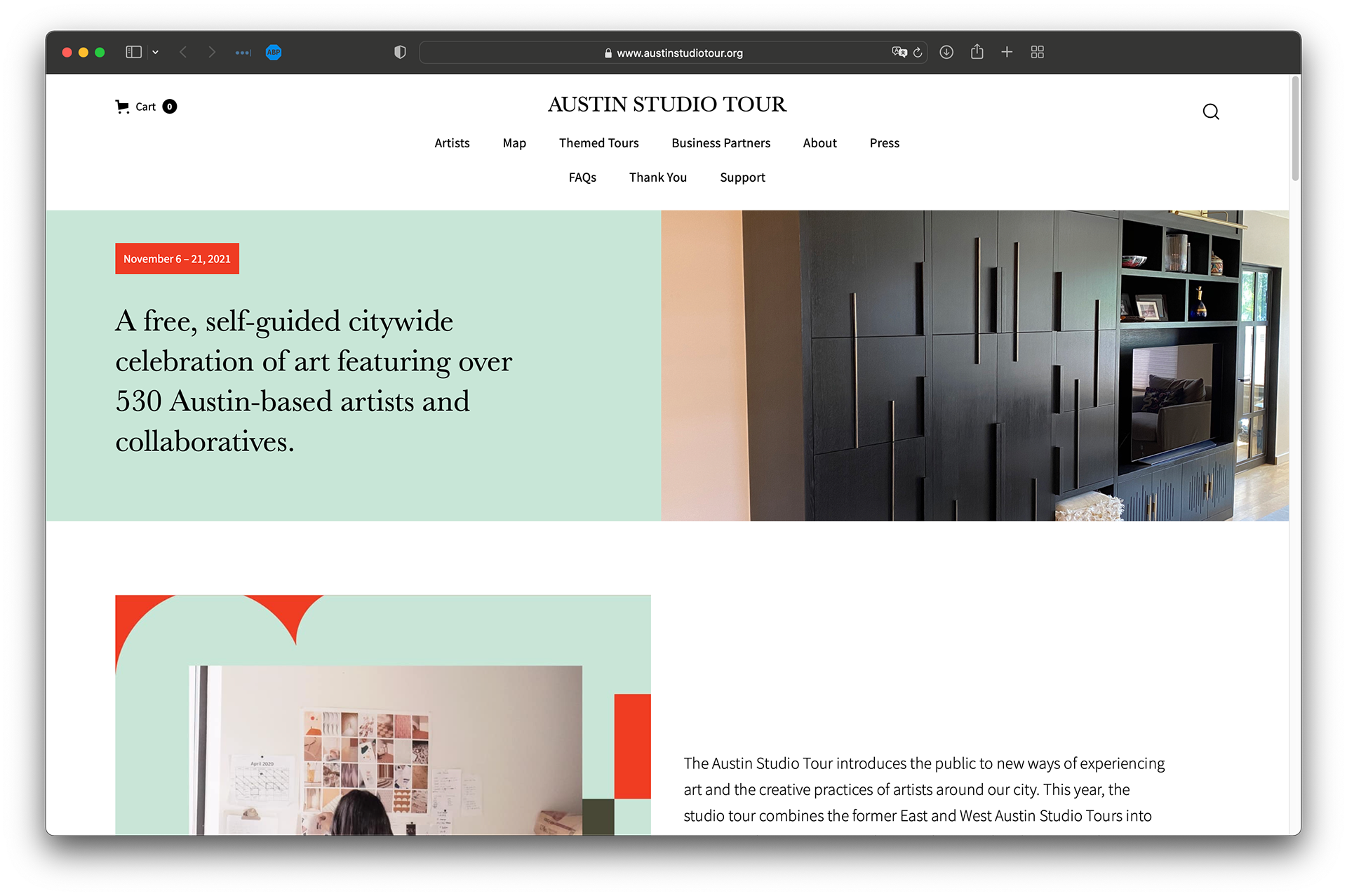 First launched in 2003, the Austin Studio Tour is a free self-guided, citywide, annual celebration of art that takes place over 3 weekends in November. The brief from Big Medium was to develop the theme and design system that serves as the foundation for all visual communications for the Austin Studio Tour for 2021.