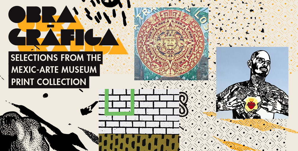 Obra Gráfica: Selections From the Mexic-Arte Museum Print Collection features the Museum’s growing collection of historical and contemporary prints by Latinx and Latin American artists with works that encompass a diverse range of techniques and subject matter. Printmaking, defined as the process of creating multiple impressions of an image, is a preferred method for its expediency in circulating information among cultures. The works in Obra Gráfica show the lineage of printmaking from Pre-Columbian to experimental forms in new media.