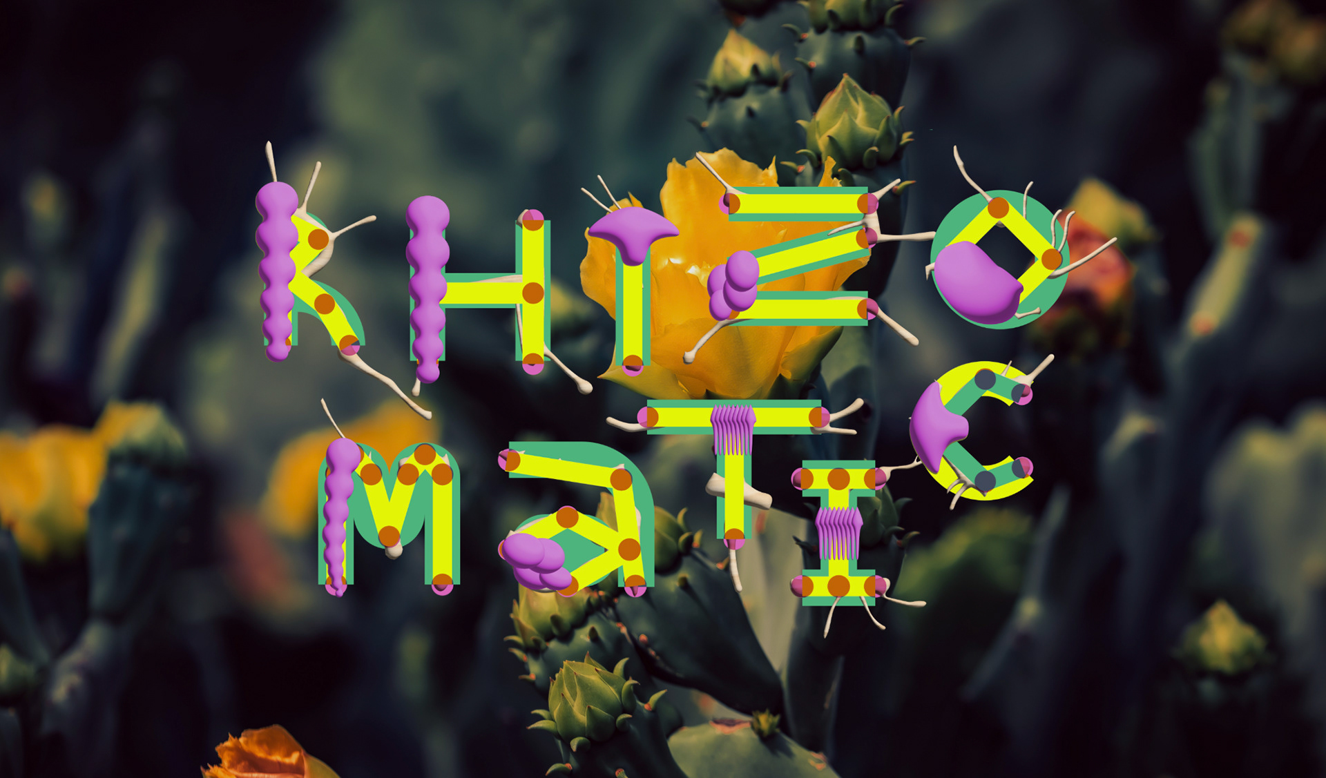 The typeface combines geometric and organic forms, referencing digital rhizomes as well as biological ones. The typeface is built out of layers that can make it appear highly complex or more simplified. Nodes were very important to illustrate the interconnected and generative qualities of the rhizome, which are depicted as flat dots as well as volumous structures.